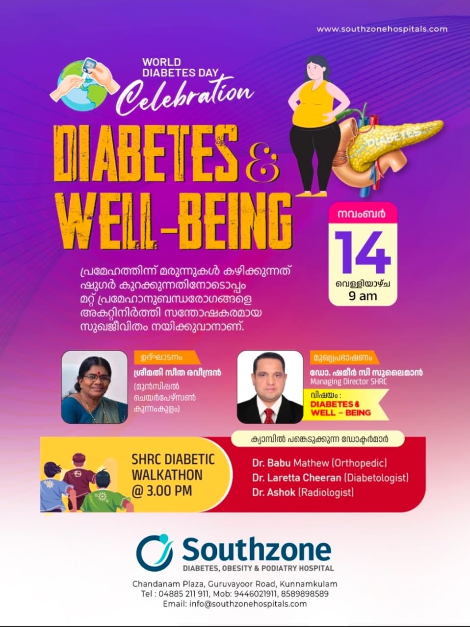 SouthZone Hospital & Research Centre Pvt. Ltd. founded by Dr.Shameer C Sulaiman is a comprehensive speciality centre for diabetes care which is operational from May 2009 in Kunnamkulam, Thrissur district Kerala, India. Inaugurated by Prof & HOD. Department of Endocrinology & Diabetes Dr. HARISH KUMAR AIMS. KOCHI. We introduced for the first time in the area, a structured and all-encompassing diabetes detection and care programme in one centre. The centre offers facilities from head to foot evaluation of diabetes patients.